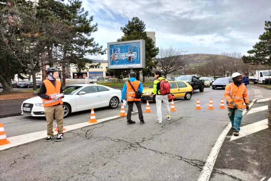 L’association Vélocité 63 a fait la circulation Place du 1er Mai à Clermont-Ferrand ce mercredi 16 février. Le trafic routier a été dévié en début d’après-midi pour sensibiliser à la sécurité des piétons et cyclistes. En cause, un conteneur de chantier placé juste avant un passage piéton qui alarme l’association, car il obstrue la visibilité.