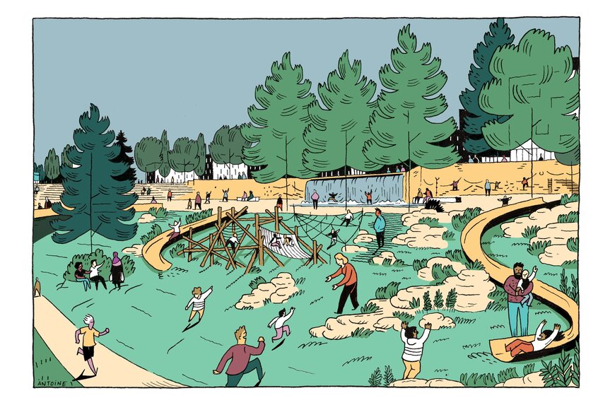 Un grand parc métropolitain de 3,5 hectares sera créé à l’emplacement de la Muraille de Chine. Il se prolongera en contrebas jusqu’à une zone préservée pour la biodiversité.