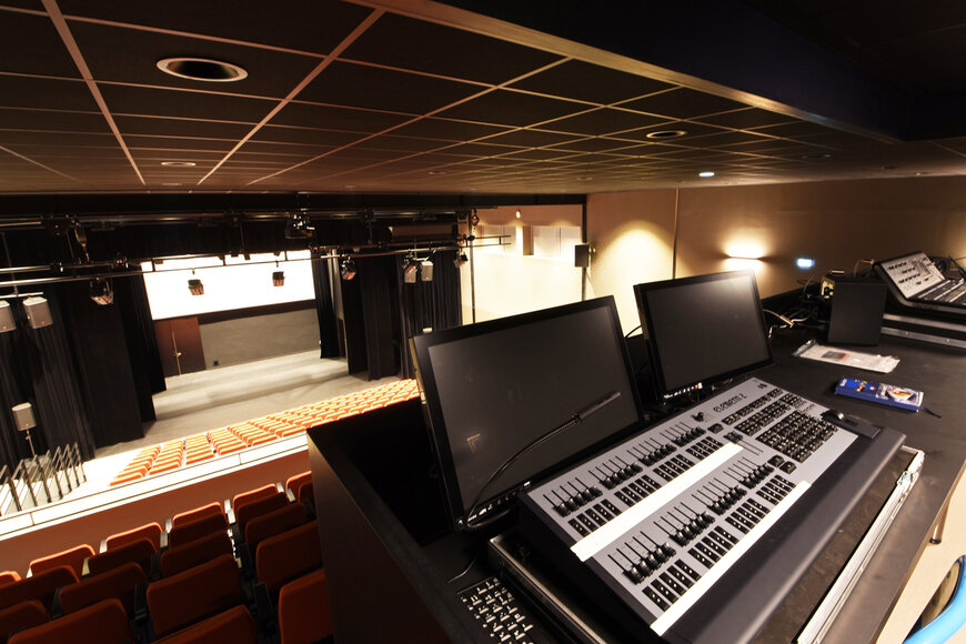 La salle principale, d’une capacité de 297 places, est équipée d’une régie qui pilote le dispositif son et lumière. Elle accueillera concerts, spectacles, débats ou projections. Sur ce total, 154 places sont installées dans un gradin amovible, qui peut se replier et ainsi disposer d’une surface plane lorsque la configuration l’exigera. À l’étage, le balcon de 143 places offre une vue panoramique sur la scène.