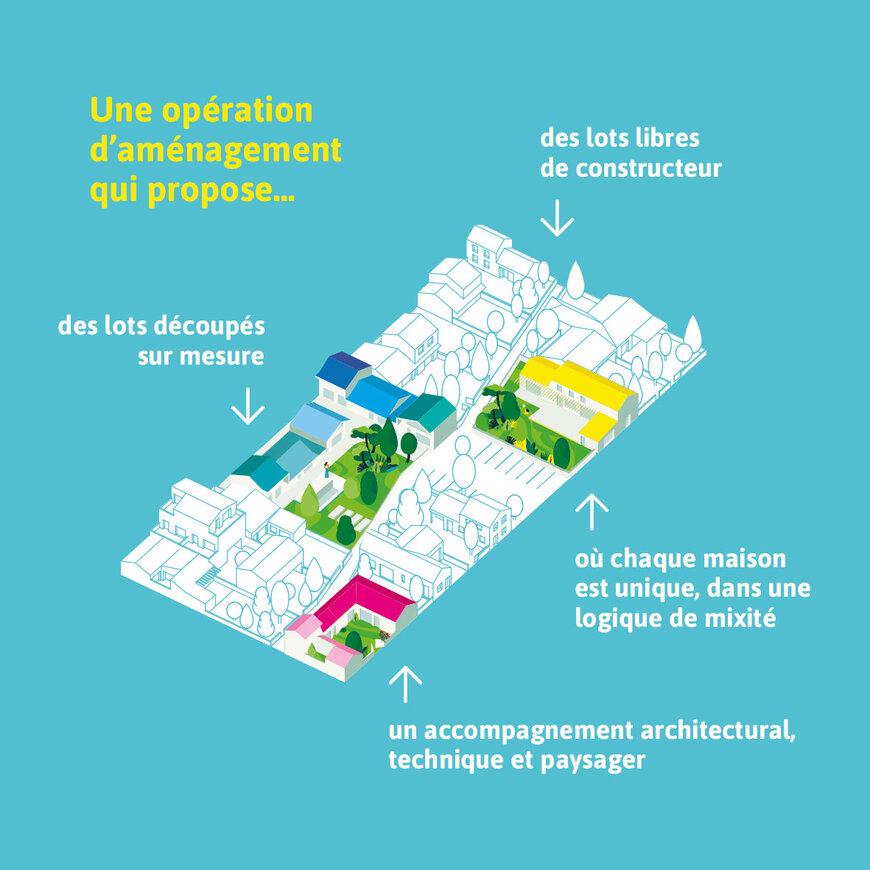 Les candidats à l’acquisition auront la liberté de choisir la situation de leur terrain au sein du lotissement, le nombre de logements à y construire, leur implantation sur la parcelle, ainsi que le maître d’œuvre qui réalisera la construction. La vente de ces micro-lots de terrains à bâtir sera proposée avec un accompagnement architectural, paysager et technique personnalisé, délivré par Villes Vivantes.