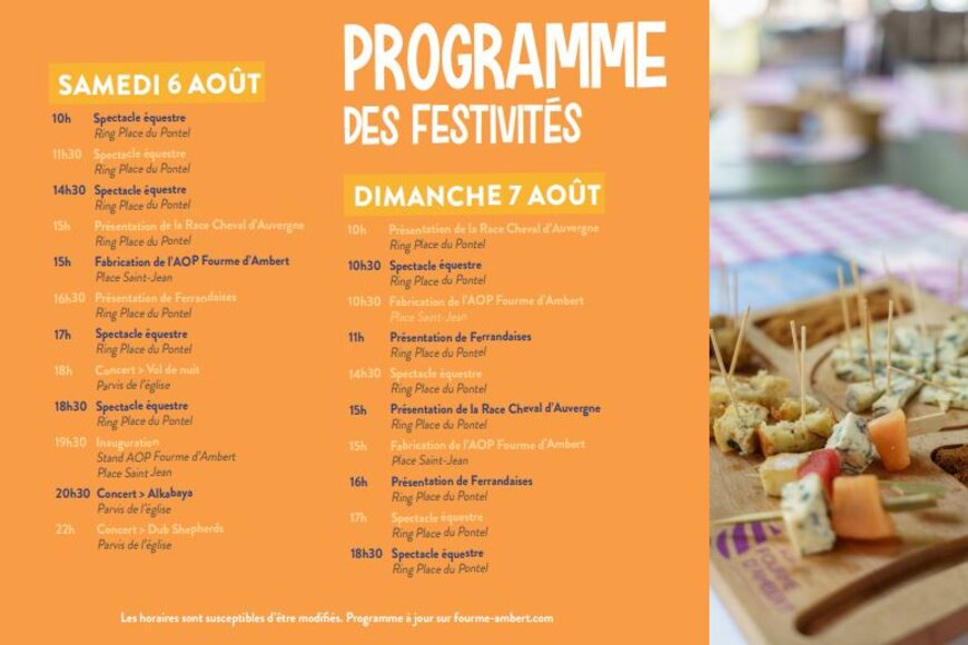 Les 6 et 7 août, l’AOP Fourme d’Ambert investit de nouveau le centre-ville d’Ambert avec son festival gourmand, les Fourmofolies. Au programme : spectacles, dégustations et présentation des animaux de la ferme.