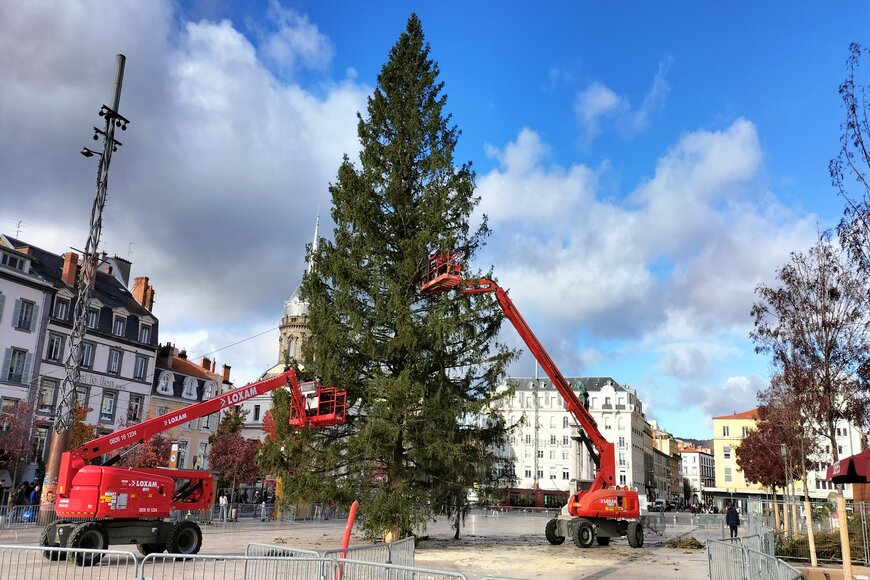 Le traditionnel sapin de noël est arrivé sur la place de Jaude de Clermont-Ferrand ce vendredi 18 novembre. Il est à nouveau offert par la commune de Murat-le-Quaire. Il s’illuminera à partir du 2 décembre.
