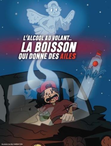 Pour faire prendre conscience aux jeunes des dangers de l’alcool, le Département a commandé une campagne de prévention aux étudiants du Bachelor design graphique de Godefroy-de-Bouillon – La Salle à Clermont-Ferrand. Ces derniers ont créé un visuel avec un message décalé « L’alcool au volant, la boisson qui donne des ailes ».