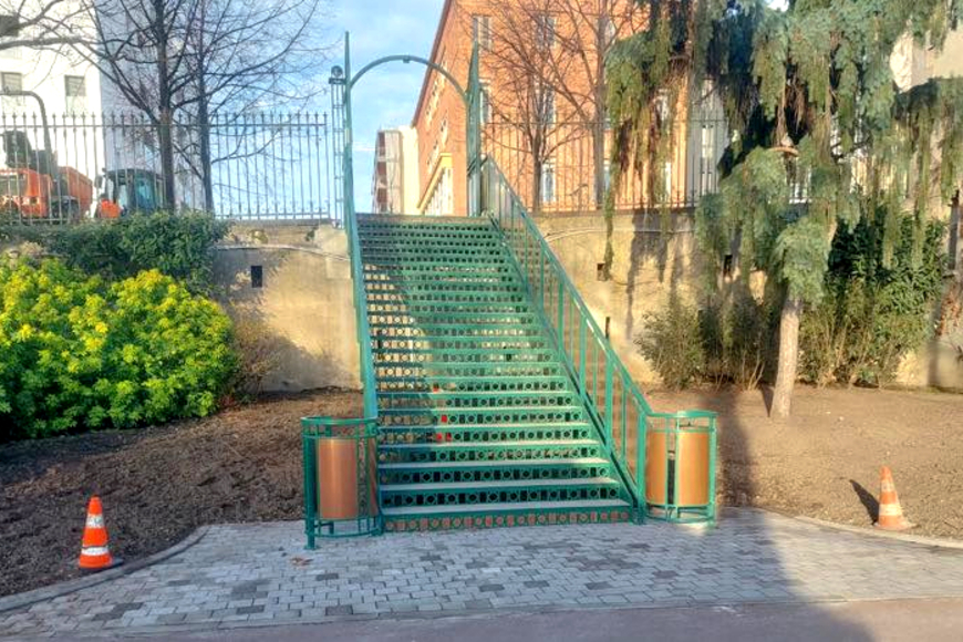 Une nouvelle et sixième entrée sur le jardin Lecoq a été ouverte avenue Vercingétorix à Clermont-Ferrand. Le parc est désormais accessible par un escalier en acier de couleur verte d’une dizaine de mètres de long. La structure de 3 tonnes répond à un défi technique de taille : franchir un dénivelé de plus de 3 mètres.